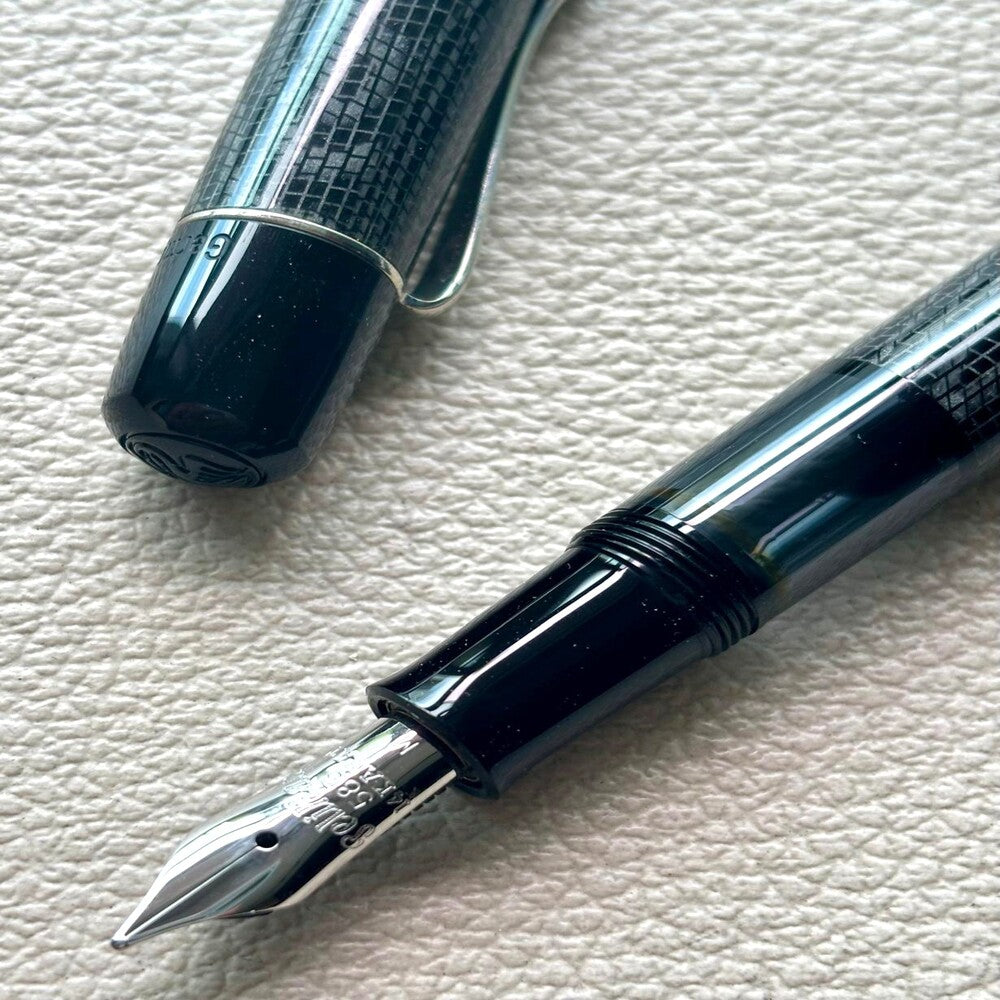 Nib: 14K rhodium-plated gold nib, available in Extra Fine (EF), Fine (F), Medium (M), and Broad (B) widths.