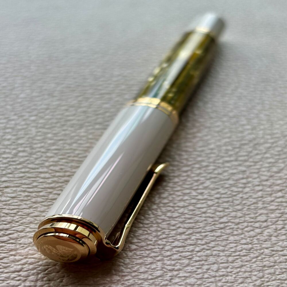 Barrel: Crafted from cellulose acetate with Pelikan's Tortoiseshell-White pattern, complemented by a white cap and gold-plated trim.