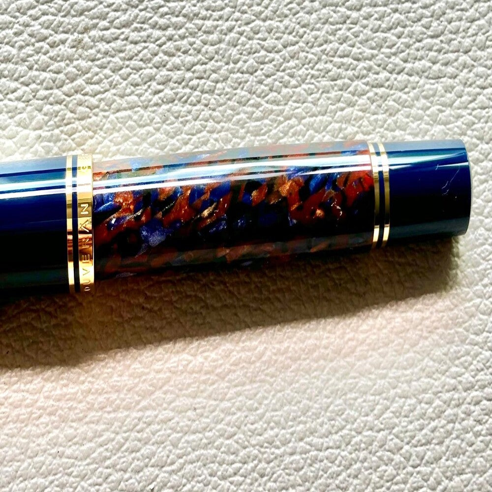 Body material: Named after serene rock gardens, it blends calm blues and rich browns in a marbled cellulose‑acetate barrel, symbolizing tranquility. Opaque dark‑blue resin (not striped), offering a graceful contrast against the marbled barrel