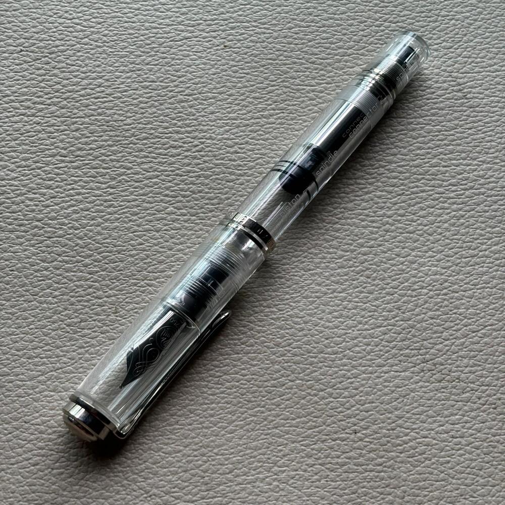 Engraved Variant: Launched alongside the standard clear model; it features English-language technical engravings on both cap and barrel (marking components like "piston knob," "ink reservoir," etc.)
