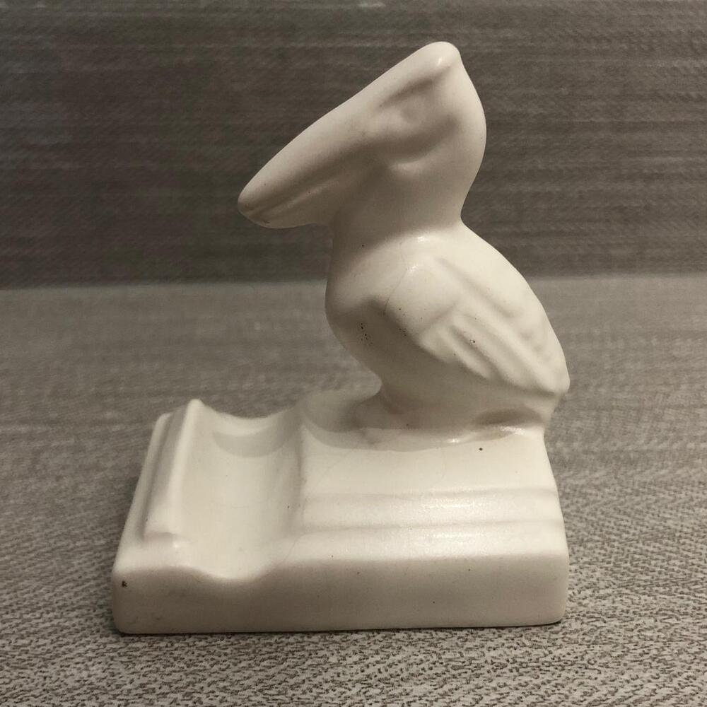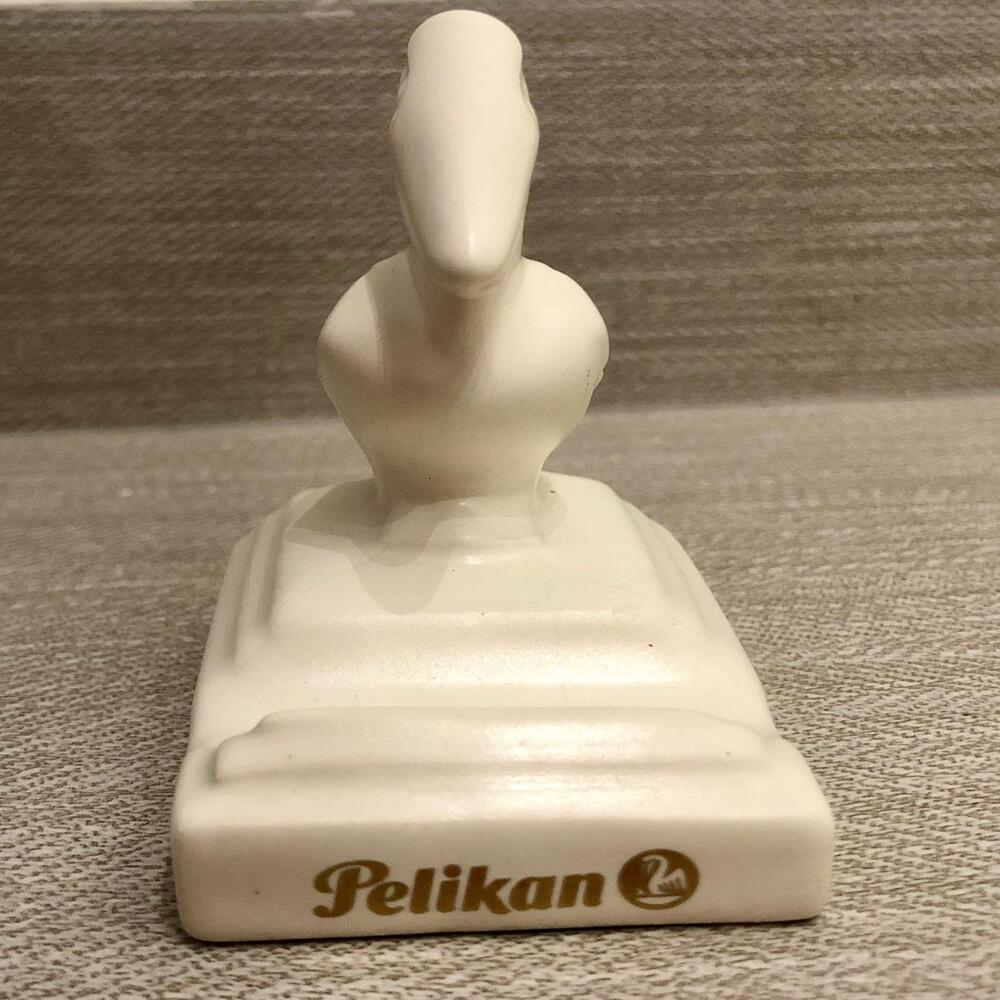 Pelikan produced small ceramic pelican stands—adorable promotional items designed to hold a single pen. These are approximately 2.5–2.75 inches tall (about 6.3–7 cm), with a tray in front of the bird
